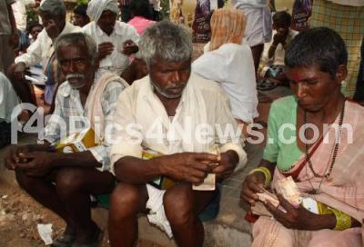 Photo Caption : Villagers in queue to buy Cotton Seeds at one of the stores in Mysore with tight police security, in Mysore on Monday 2nd May 2011