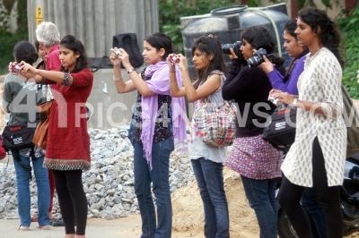 Students seen taking pictures at MG Road, in Bangalore on Wednesday 15th June 2011