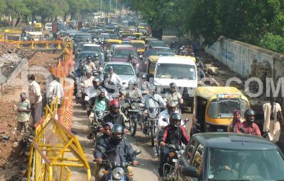 Traffic Jam following the BDA Junction Underpass Work Progress at Palace Road, in Bangalore on Thursday 27th March 2008.