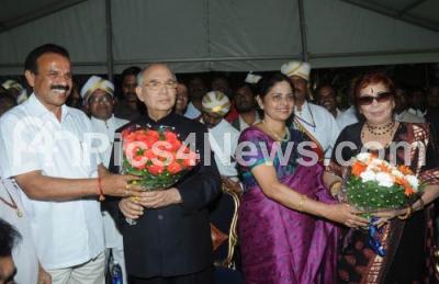 Photo Caption : Chief Minister DV Sadananda Gowda greeting Independence Day wishes to Governor HR Bhardwaj and Datti Sadananda Gowda, wife of Chief Minister greeting Prafulatha Bhardwaj at a tea party hosted by the Governor at Raj Bhavan on the occasion of 65 Independence Day celebration, in Bangalore on Monday 15th August 2011
