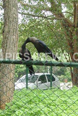 A crow feeding its young at the Cubbon Park, in Bangalore on Friday 4th April 2008.
