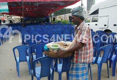 Photo Caption : A vendor seen waiting for people to gather at protest place before the start of protest from DSS, CPI CPIM and other third front parties against corruption at Gandhi Statue Anand Rao Circle, in Bangalore on Tuesday 23rd August 2011
