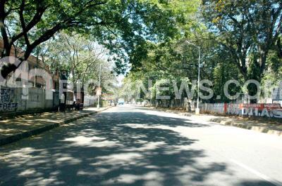 Kempegowda Road wears deserted look following the Ugadi Festival, in Bangalore on Monday 7th April 2008.