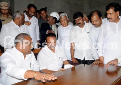 Photo Caption : Chief Minister DV Sadananda Gowda seen inspecting work progress of construction of the Survarna Soudha in Belgaum during his visit to Belgaum District on Monday 10th October 2011