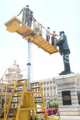 Photo Caption : Staff at Vidhana Soudha inspect the crane to be used for garlanding the Ambedkar Statue for upcoming Ambedkar Jayanthi, in Bangalore on Sunday 13th April 2008.