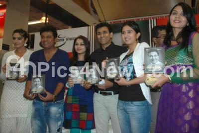Photo Caption : Actors Shivaraj Kumar, Raghavendra Rajkumar, Actress Ragini Dwivedi and others seen releasing a DVD of Dr Rajkumar biography "Mareyalagada Muthuraj" at Reliance TimeOut organised by Reliance TimeOut and Raj Video Vision, in Bangalore on Wednesday 16th November 2011