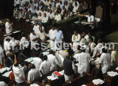 Opposition MLAs seen protesting at Assembly Hall during Assembly Session in Vidhana Soudha, in Bangalore on Thursday 8th December 2011