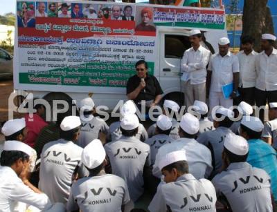 Photo Caption : Former Lokayukta Justice N Santhosh Hegde addressing members of Jagruthi Vidyarthi Vedike from Honnali Taluk of Davangere District during their protest in support of Lokayukta and Jan Lokpal, protest held at Freedom Park, in Bangalore on Monday 2nd January 2012