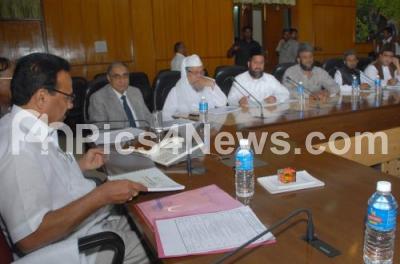 Photo Caption : Chief Minister Sadananda Gowda with Former Minister Mumtaz Ali Khan, Moulana Mufti Ashraf Ali, Irfan Razack, CMD, Prestige Group and others during a meeting on proposed construction of “Haj Ghar†(Haj House) at Tirumenahalli Village, Yelahanka Hobli, meeting held at CM’s Home Office Krishna, in Bangalore on Tuesday 3rd January 2012
