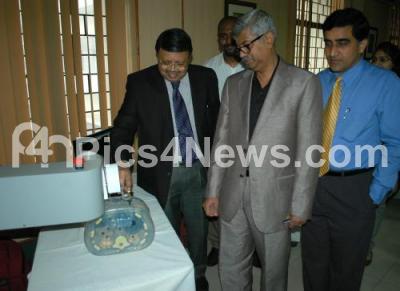 Dr Sathishchandra, Medical Superintendent with Dr Roy Santhosham, Professor of Radio Diagnosis & Imaging SRMC and RI and others seen during inspecting ROBIO EX, a machine system which assists with accurate tumor targeting and tool placement for abdominal and thoracic interventions, at Bowring and Lady Curzon Hospital, in Bangalore on Tuesday 3rd January 2012