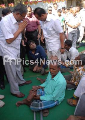 Photo Caption : Chief Minister DV Sadananda Gowda and Minister S Suresh Kumar seen interacting with physically challenged people during distribution of artificial limb to beneficiaries at Mega Jaipur Limb Camp at Ganesh Bagh, in Bangalore on Thursday 5th January 2012