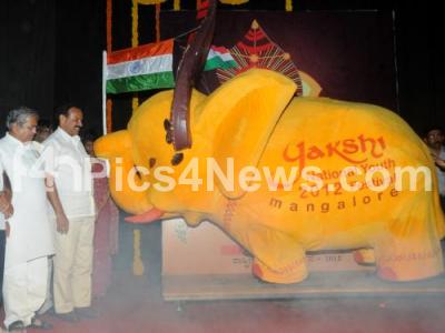 Chief Minister DV Sadananda Gowda with Minister Govind Karjol launching the Mascot of 17th National Yuvajanotsava (National Youth 2012 Festival) which will be held in Mangalore, launch programme held at Yavanika, in Bangalore on Friday 6th January 2012