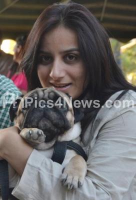 Photo Caption : Actress Pooja Gandhi seen along with her pet dog at the inauguration of the Wags and Wiskers, a professional pet care centre at Patels Inn at RT Nagar, in Bangalore on Saturday 7th January 2012