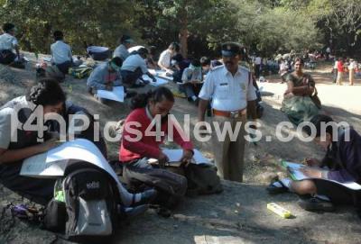 Photo Caption : School children seen participating in painting competition on Road Safety as part of 23rd National Road Safety Week celebration at Cubbon Park, in Bangalore on Sunday 8th January 2012