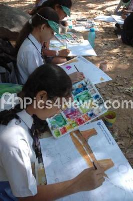 Photo Caption : School children seen participating in painting competition on Road Safety as part of 23rd National Road Safety Week celebration at Cubbon Park, in Bangalore on Sunday 8th January 2012