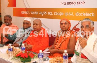 Photo Caption : Shri Balagangadharnatha Swamji addressing during a round table conference on “Effect of Alcoholism on Society†also seen Sachidananda Hegde, Chairman, Karnataka State Temperance Board, Shri Gangadharendra Swaraswathi Mahaswamji, Ho Srinivasaiah, President of Gandhi Bhavan and others at Gandhi Bhavan organised by Karnataka State Temperance Board, in Bangalore on Thursday 12th January 2012