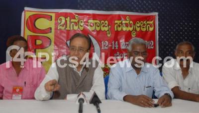 Photo Caption : D Raja, CPI, General Secretary with Sudhakar Reddy, Former MP & Deputy General Secretary, CPI and others CPI Leaders seen at a press conference at CPI Office, Malleshwaram, in Bangalore on Friday 13th January 2012