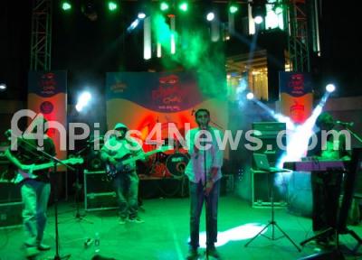 Photo Caption : Artists of rock band “Caesar’s Palace†seen performing at Kingfisher Rock Festival as part of ongoing Bengaluru Habba at UB City, in Bangalore on Saturday 14th January 2012
