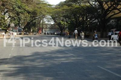 Photo Caption : KG Road seen completely off of vehicles during Advocates protest and road blockade on KG Road near SBM Circle during their protest against assault by police on an advocate, in Bangalore on Tuesday 17th January 2012
