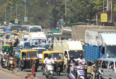Photo Caption : Traffic jam on Maharani College Road due to Lawyers protest rally from SBM Circle to Raj Bhavan against police, in Bangalore on Thursday 19th January 2012