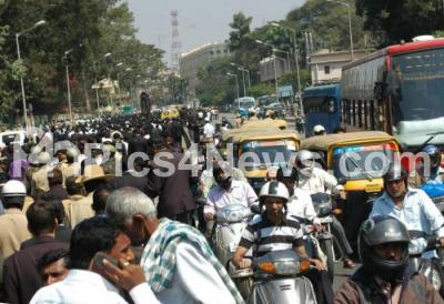 Photo Caption : Traffic jam on Maharani College Road due to Lawyers protest rally from SBM Circle to Raj Bhavan against police, in Bangalore on Thursday 19th January 2012