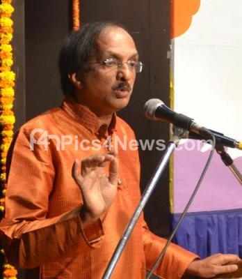 Photo Caption : Poet H Dundiraj seen addressing during Maneyangaladalli Mathukathe programme organised by Kannada and Culture Department at Nayana, in Bangalore on Saturday 21st January 2012