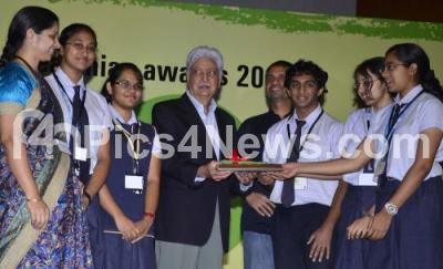 Photo Caption : Azim Premji, Chairman, Wipro Ltd seen presenting Earthian Award to Sri Kumaran Childrens Home, Bangalore during Earthian Awards 2011-12 presentation ceremony at JN Tata Auditorium, in Bangalore on Saturday 21st January 2012