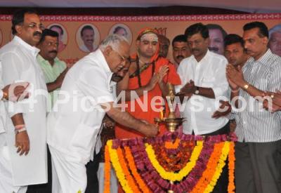 Photo Caption : Former Chief Minister BS Yediyurappa lighting the lamp to inaugurate 600th Jayanthi celebration programme of Mahayogi Vemananda at Doddakannahalli Sarjapur Road organised by BJP also seen MLA Aravind Limbavali, Shri Vemananda Swamiji and others, in Bangalore on Saturday 22nd January 2012