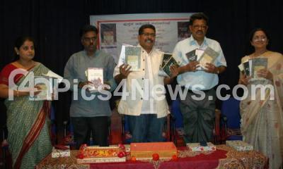 Photo Caption : Girish Rao (Jogi) with MS Asha Devi, NS Sridhara Murthy, Chintamani Kudlekere and Mitra Venktraja seen releasing various book during books release programme at Indian Institute of World Culture, in Bangalore on Saturday 22nd January 2012