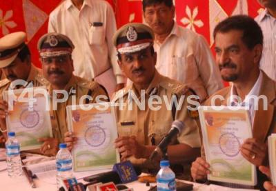 Photo Caption : BBMP Commissioner Shankaralinge Gowda with Police Commissioner Jyothi Prakash Mirji, Joint Commissioner of Police (CAR) BNS Reddy and Additional Commissioner Sunil Kumar seen releasing a brochure on Republic Day Parade a press conference at at Manekshaw Parade Grounds, in Bangalore on Tuesday 24th January 2012