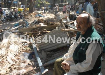 BBMP demolished illegally constructed shops on footpath at Gandhi Bazaar in Basavanagudi yesterday night during a demolition drive by BBMP, in Bangalore on Tuesday 24th January 2012