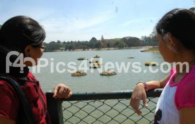 Photo Caption : Visitors seeing flowers decorated on round boats which are floating in Lalbagh Lake as part of ongoing Republic Day Flower Show in Lalbagh, in Bangalore on Tuesday 24th January 2012