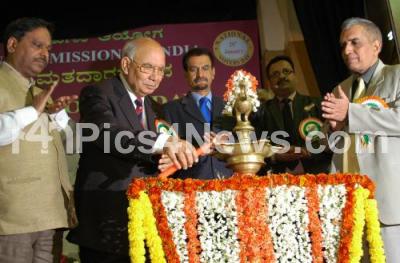 Photo Caption : HR Baradwaj, Governor inaugurating the National Voters Day by lighting the lamp in the presence of SV Ranganath, IAS, CR Chikmath, Commissioner State Election Commission and others at Town Hall, in Bangalore on Wednesday 25th January 2012