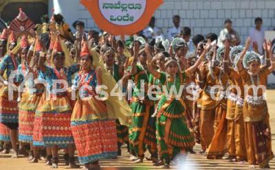Photo Caption : School Children participating in cultural programme at Republic Day parade on the occasion of 63rd Republic Day celebration at Manekshaw Parade Ground, in Bangalore on Thursday 26th January 2012