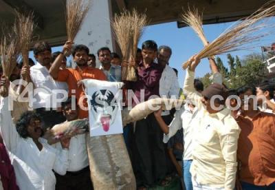 Photo Caption : Members of Kannada Chalavali Vatal Paksha led by its leader Vatal Nagaraj seen protesting against price rise of basic commodities, protest held at Kempegowda Bust Stand, in Bangalore on Thursday 26th January 2012