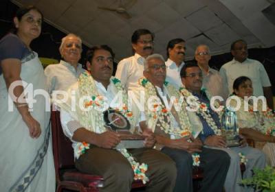 Photo Caption : Prof LS Sheshagiri Rao, Manu Baligar, Commissioner Kannada and Culture Dept, Dr MS Asha Devi and others presenting Masti Awards to Girish Jaakapure, Usha Narasimhan, K Sathyanarayana and Sharath Kalkod during an awards presentation ceremony and Masti awards books release programme organised by Dr Masti Venkatesh Iyengar Trust at Hotel Woodlands, in Bangalore on Friday 27th January 2012