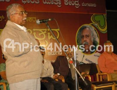 Photo Caption : Jnanapeetha Awardee Dr Chandrashekhar Kambara seen addressing during the inauguration of HS Shivaprakash’s “Natakotsavaâ€Â, a three day drama programme from 27th to 29th January at Samsa organised by Karnataka Vichara Vedike and Bharatha Yathra Kendra, in Bangalore on Friday 27th January 2012
