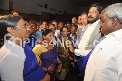 Photo Caption : Former Union Minster Yogendra Makwana with Venkataswamy, President of SSD, G Somashekhar and others seen interacting with women activists of SSD during the inauguration of State Convention on 75 Years of Dalit Politics at Jnana Jyothi Auditorium, in Bangalore on Saturday 28th January 2012