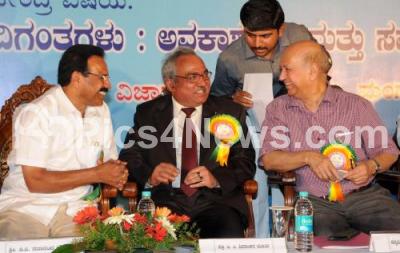 Photo Caption : Chief Minister DV Sadananda Gowda seen interacting with UR Rao, Scientist & Former Chairman of Space Commission and Prof TC Shivashankar Murthy during 4th Conference of Karnataka State Science and Technology Academy at Mangalore University, in Mangalore on Saturday 28th January 2012