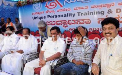 Photo Caption : Union Minister M Veerappa Moily with Actor Shivaraj Kumar, Minister BN Bachegowda, Speaker KG Bopaiah and MLA Narendra Babu seen during the inauguration of Unique Personality Training and Development Centre organized by Anushrutha Foundation Trust at JC Road, in Bangalore on Sunday 29th January 2012