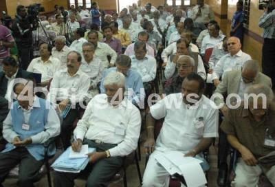 Photo Caption : Officers along with BBMP corporators seen during one day conference on Bangalore's Water Famine by 2020: A Ticking Time Bomb, a conference on impending water crisis of Bangalore at Gandhi Bhavan organised by Centre for Policies and Practices, in Bangalore on Sunday 29th January 2012