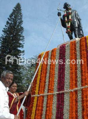Photo Caption : Mayor Sharadamma garlanding the statue of Mahatma Gandhi on the occasion of Martyrs Day and Sarvodaya Day at Gandhi Statue MG Road organised by BBMP, in Bangalore on Monday 30th January 2012