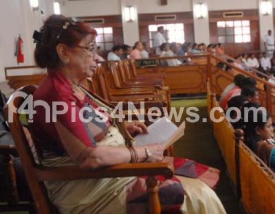 Photo Caption : Prafulatha Bhardwaj seen during Governor HR Bhardwaj’s address to Joint Session of Legislation at Assembly Hall in Vidhana Soudha, in Bangalore on Monday 30th January 2012