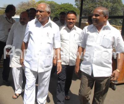 Photo Caption : Former Chief Minister BS Yediyurappa with other Minister and MLAs seen arriving at Vidhana Soudha for Joint Session of Legislation, in Bangalore on Monday 30th January 2012