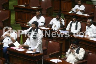 Photo Caption : MLAs seen during Assembly Session in Vidhana Soudha, in Bangalore on Wednesday 1st February 2012