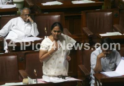 Photo Caption : Minister Shobha Karandlaje seen answering during question hour of Assembly Session at Vidhana Soudha also seen Minister Murugesh Nirani and others, in Bangalore on Thursday 2nd February 2012