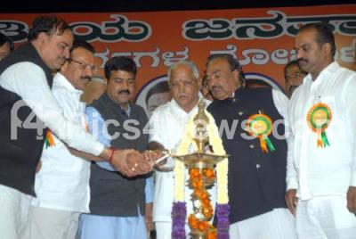 Photo Caption : Chief Minister DV Sadananda Gowda with Dharmendra Pradhan, Karnataka State BJP In charge, Former Chief Minister BS Yediyurappa, BJP leaders KS Eshwarappa, Ananthkumar, PC Mohan and others seen inaugurating Backward Class Leaders Convention at Gayathri Vihar Palace Ground, in Bangalore on Friday 3rd February 2012