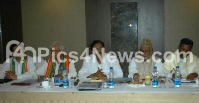 Photo Caption : KPCC President Dr G Parameshwar with Senior Congress Leader CK Jaffer Sheriff, Union Minister KH Muniyappa, Madhusudhan Mistry and Shantaram Nayak seen during KPCC senior leaders meeting at Hotel Atria, in Bangalore on Friday 3rd February 2012