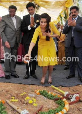 Photo Caption : Actress Sonam Kapoor with seen during the ground breaking ceremony of Nitesh Mall at Indiranagar,Thangiah Complex also seen Nitesh, George Thangiah and others, in Bangalore on Saturday 4th February 2012