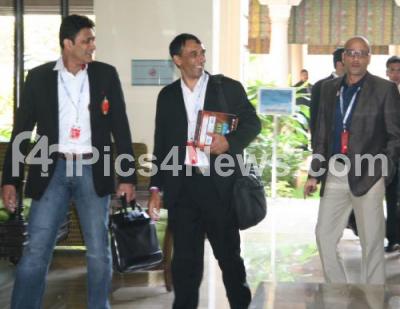 Photo Caption : Anil Kumble of Royal Challengers Bangalore along with RCB team officials seen arriving at Hotel ITC Royal Gardenia for IPL Auction 2012, in Bangalore on Saturday 4th February 2012